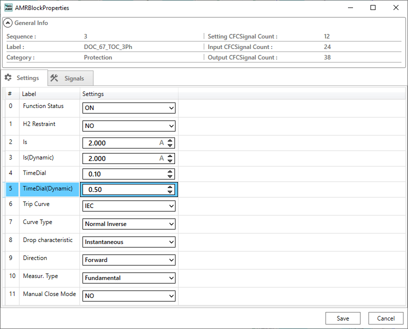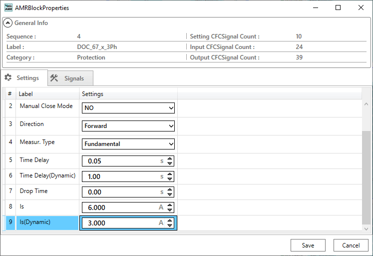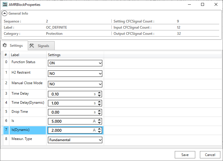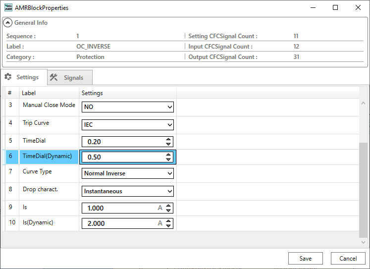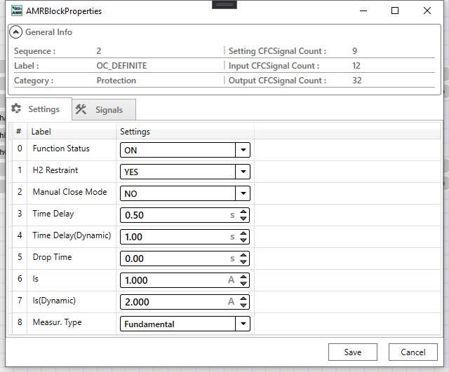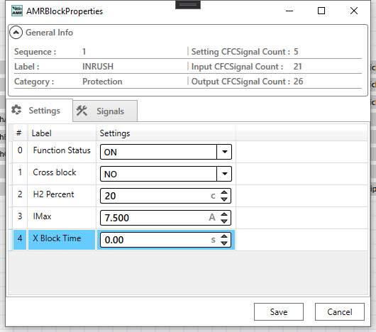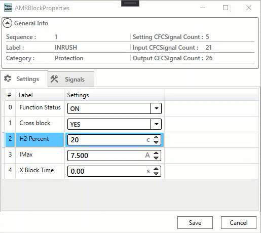 برای وارد کردن تنظیمات مربوطه روی بلوک Inrush و OverCurrent دابل کلیک کرده و تنظیمات را مطابق دو شکل پایین وارد کنید.