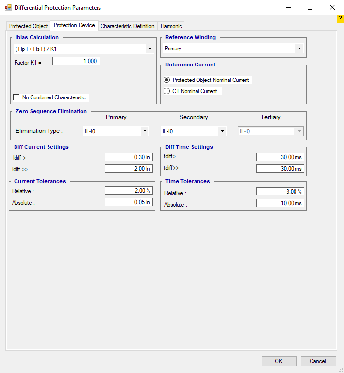 در تب Protection Device اطلاعاتی نظیر تلرانسهای جریانی و زمانی، جریانPickup و تأخیرهای زمانی تنظیم میگردد. تنظیمات را مطابق با شکل زیر انجام دهید.