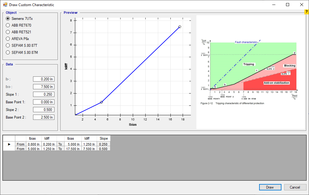 برای ترسیم منحنی دیفرانسیل وارد تب Characteristic Definition شده و Draw Custom را انتخاب کنید. اطلاعات مربوط به رسم منحنی را مطابق با شکل زیر انجام دهید.