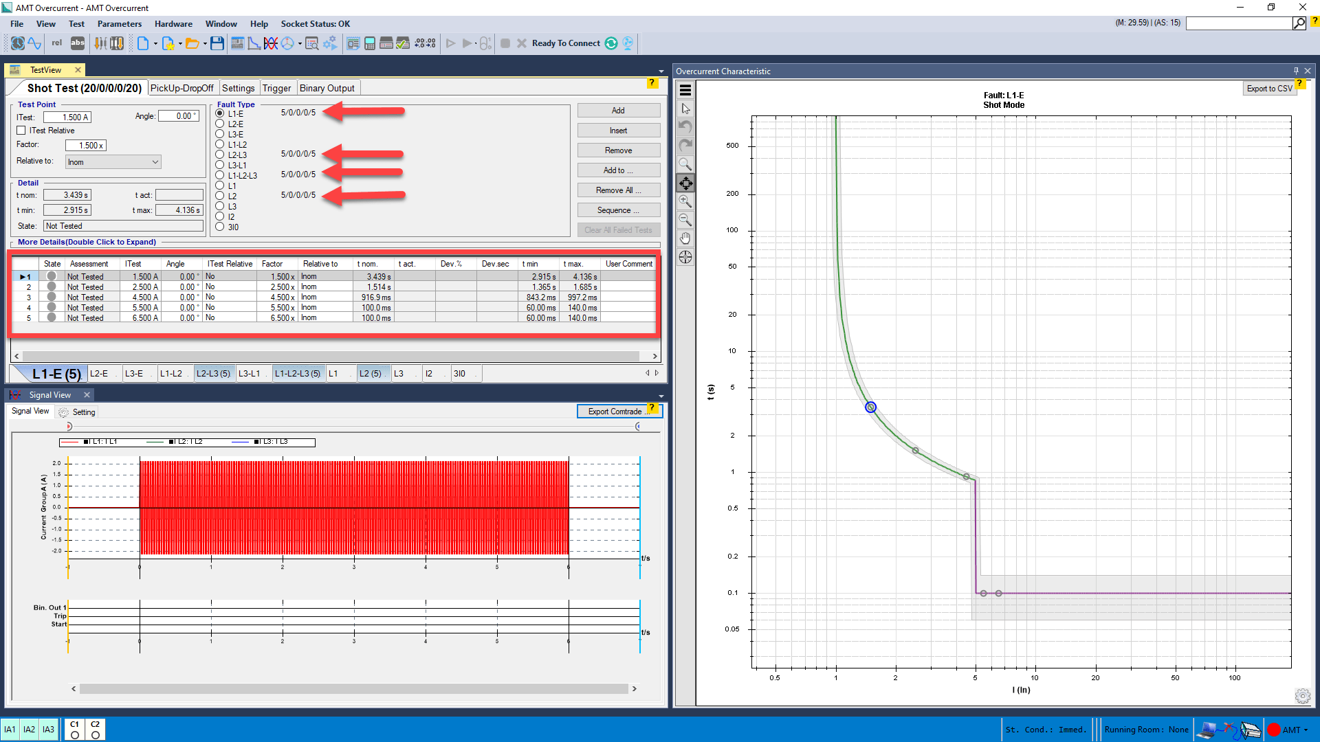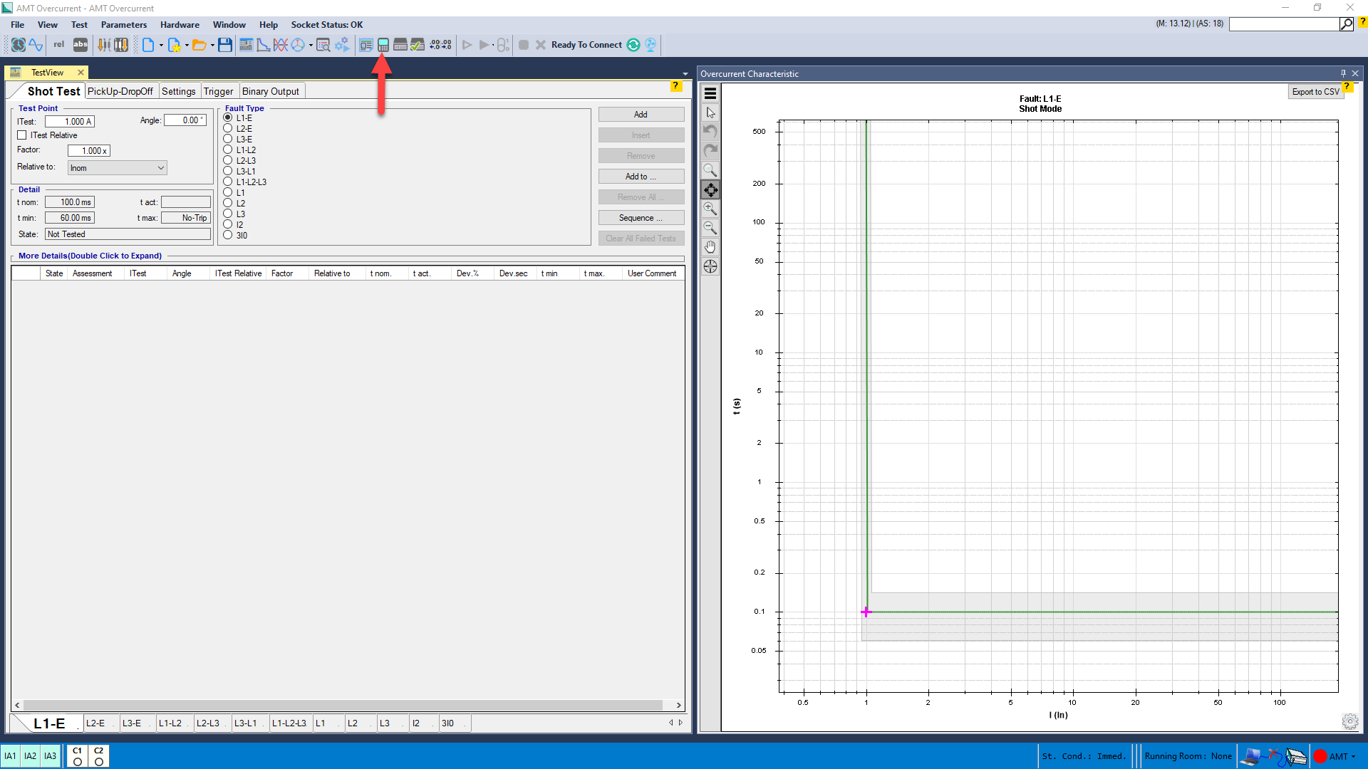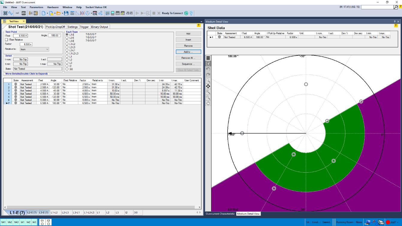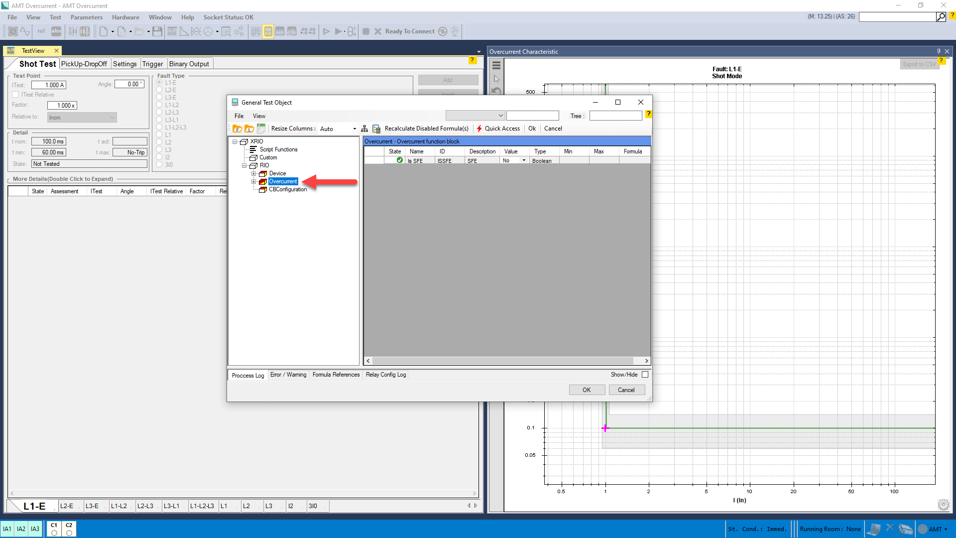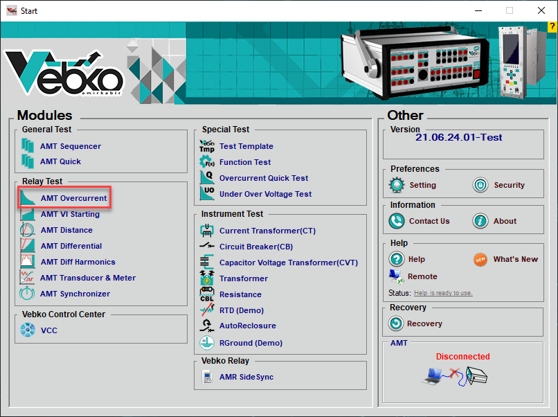 برای اعمال تنظیمات به نرمافزار دستگاه تست رله ایتدا باید مطابق شکل زیر وارد روم AMT Overcurrent شوید.
