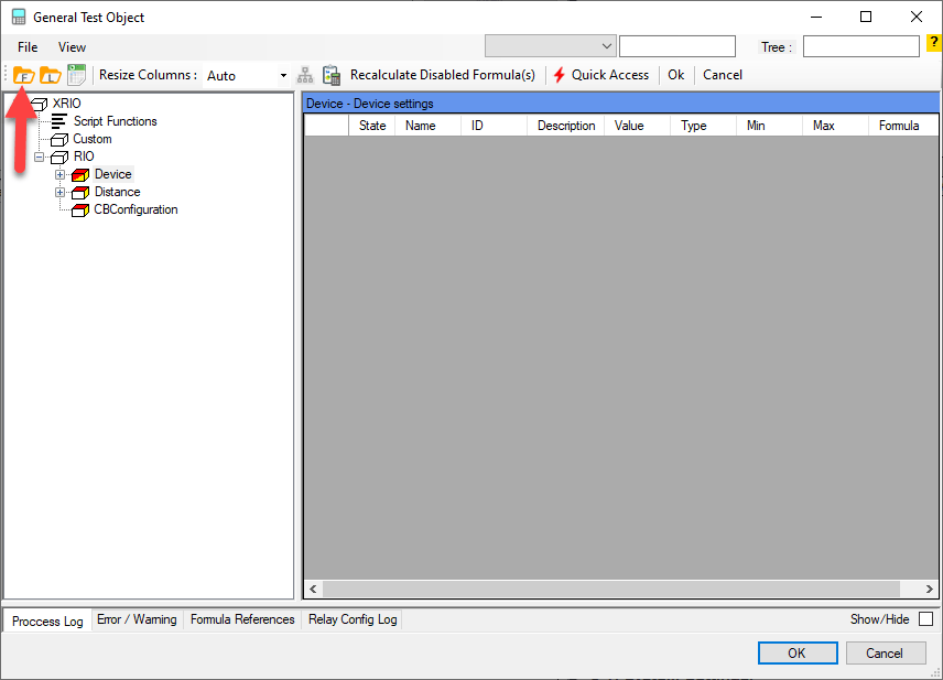 سپس در مرحله بعد وارد قسمت Test Object مطابق با شکل زیر شوید و ابتدا در قسمت "Device" از نمودار درختی اطلاعات "I Primary" و "I Secondary" که نسبت تبدیل "CT" است را وارد کنید. توجه داشته باشید که هرگونه عدم تطابق بین تنظیمات این بخش و تنظمیات رله منجر به جوابهای نادرست در تست رله خواهد شد.
