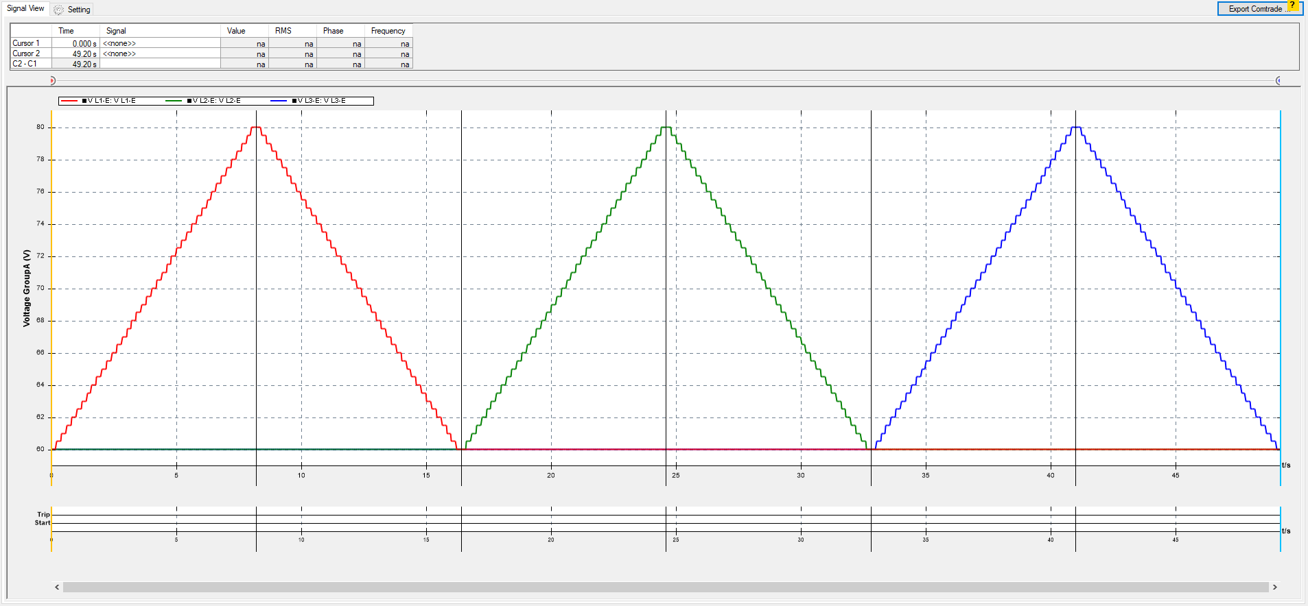 تنظیمات مرتبط به ولتاژ فازهای دیگر نیز بصورت مشابه میباشد. در شکل زیر شکل موج نهایی در Signal View را نشان داده شده است.