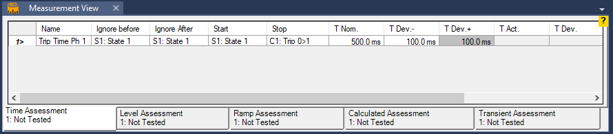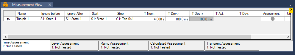 در Measurement View، در قسمت Time Assessmentزمان تغییر وضعیت سیگنال تریپ از 0 به 1در واقع Trip Time فانکشن اضافهولتاژ میباشد. یک نمونه از Time Assessment برای فاز اول در مشاهده میشود.